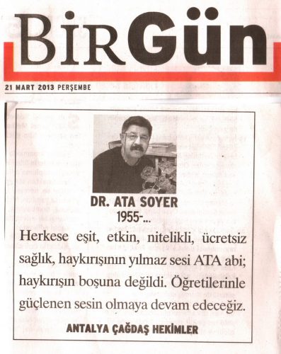 Ata abiyi 12 Mart 2013 Cumartesi günü Ankara’da son yolculuğuna uğurladık.